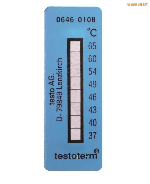 testoterm - 溫度貼(+37 ~ +65 °C) (+37 °C to +65 °C) 訂貨號 0646 0108 測量范圍+37 °C 到+65 °C 自粘性條形溫度貼 一旦超出限值即可在2~3s內(nèi)改變顏色 監(jiān)控移動或小物體溫度變化以及長期監(jiān)測運輸和存儲過程的理想工具 自粘性溫度貼廣泛用于表面溫度測量,有用的溫度計,超出溫度量程2,3秒內(nèi)即可改變顏色。